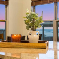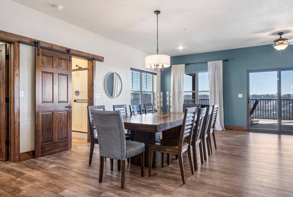 The dining area, with stunning views, can accommodate up to 22 guests for a sit-down dinner, perfect for hosting a family dinner or special event.