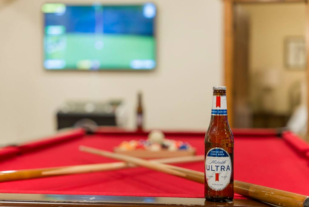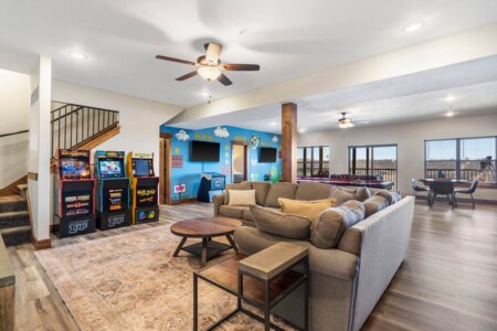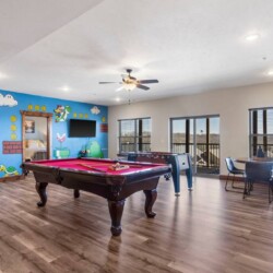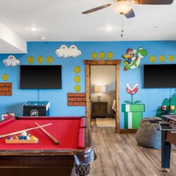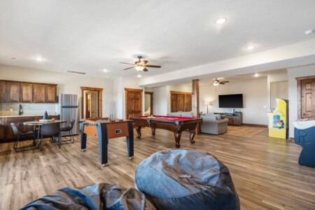 The basement is home to the incredible, state-of-the-art game room which will provide hours of entertainment for your whole group. There’s also a brand new indoor pool opening in May 2023, and a fabulous communal pool for more outdoor fun.