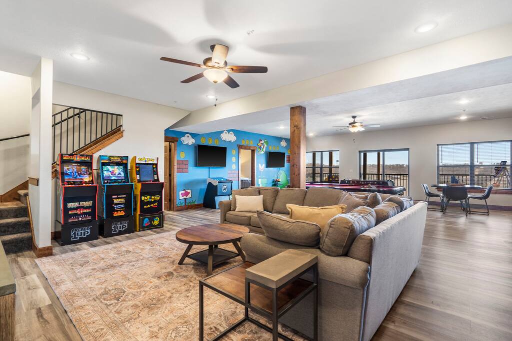 This stunning Ozark Mountain retreat is situated in a lake view resort on Indian Point. Overlooking Table Rock Lake and minutes away from SDC and 2 marinas, with loads of great bars and restaurants to choose from.