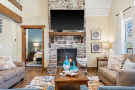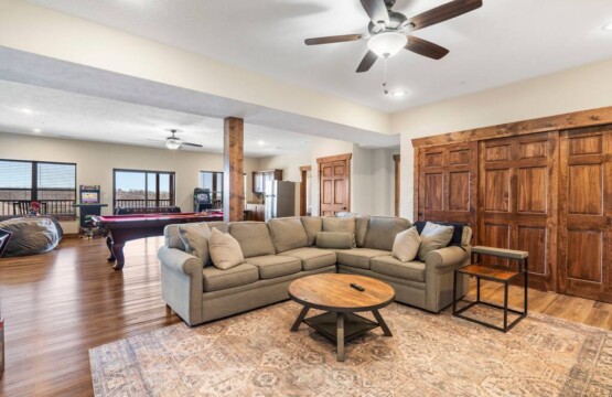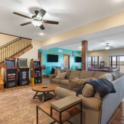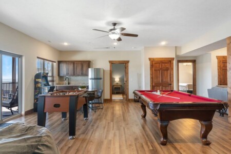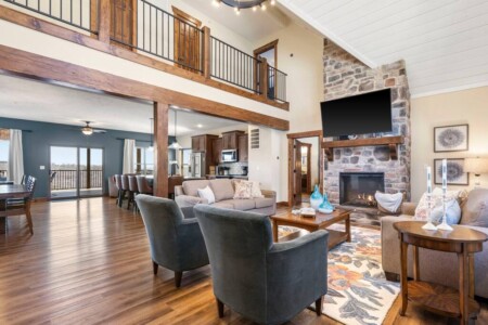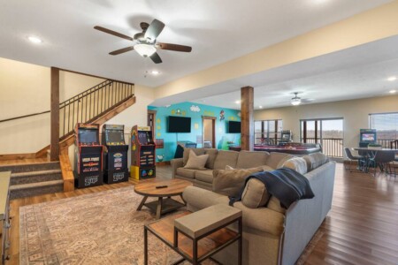 An 8 bdr lodge with stunning lake views and the best game room ever to keep y’all entertained. That’s what’s on offer at our Ozark mountain retreat.