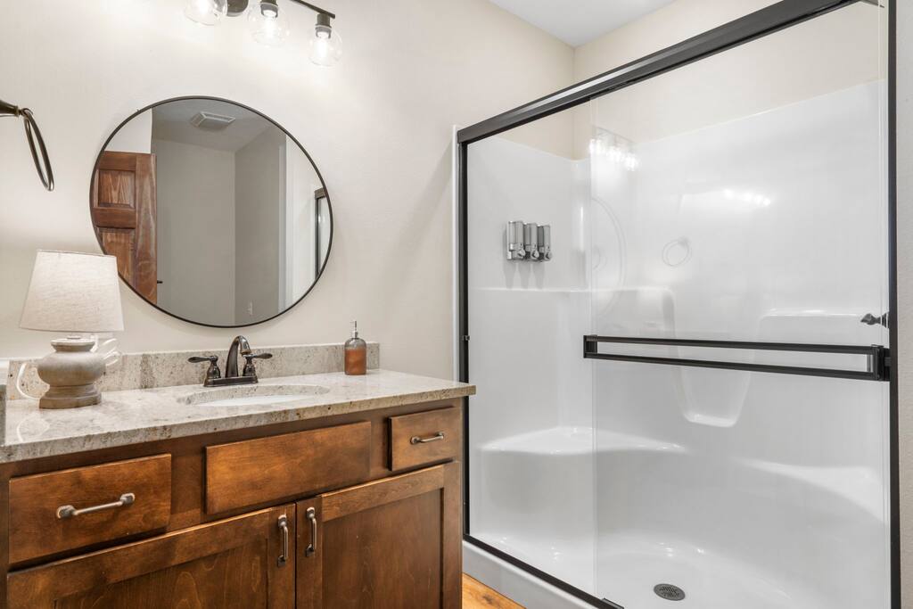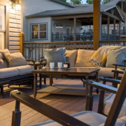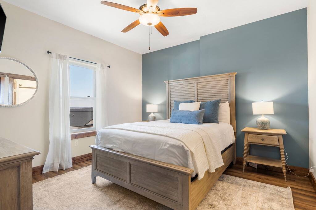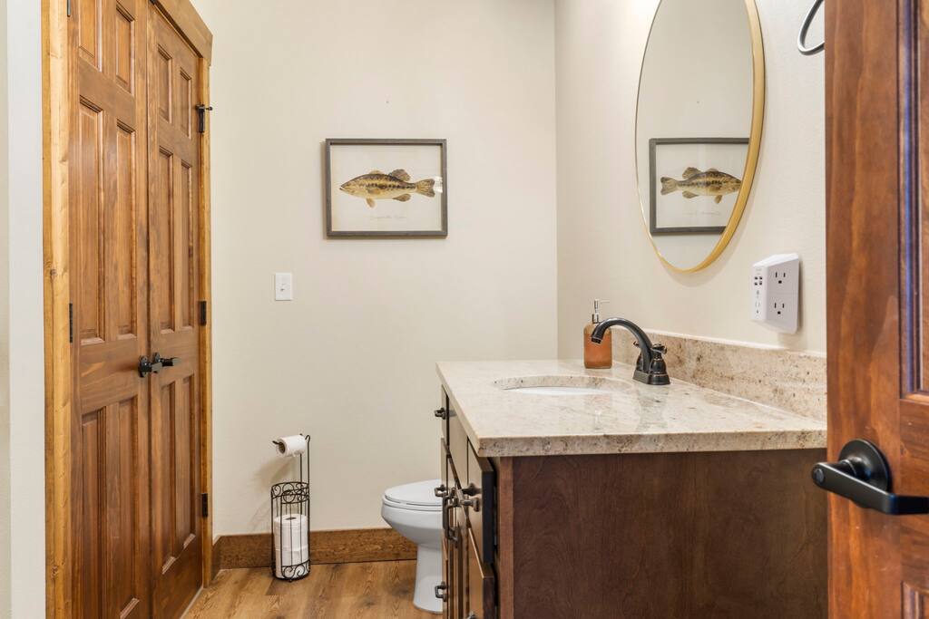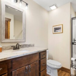 Downstairs, another patio with seating for four offers a different but equally as beautiful perspective of the lake views.
