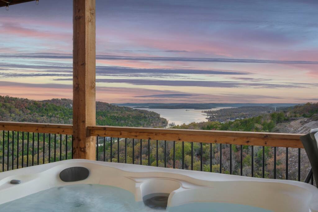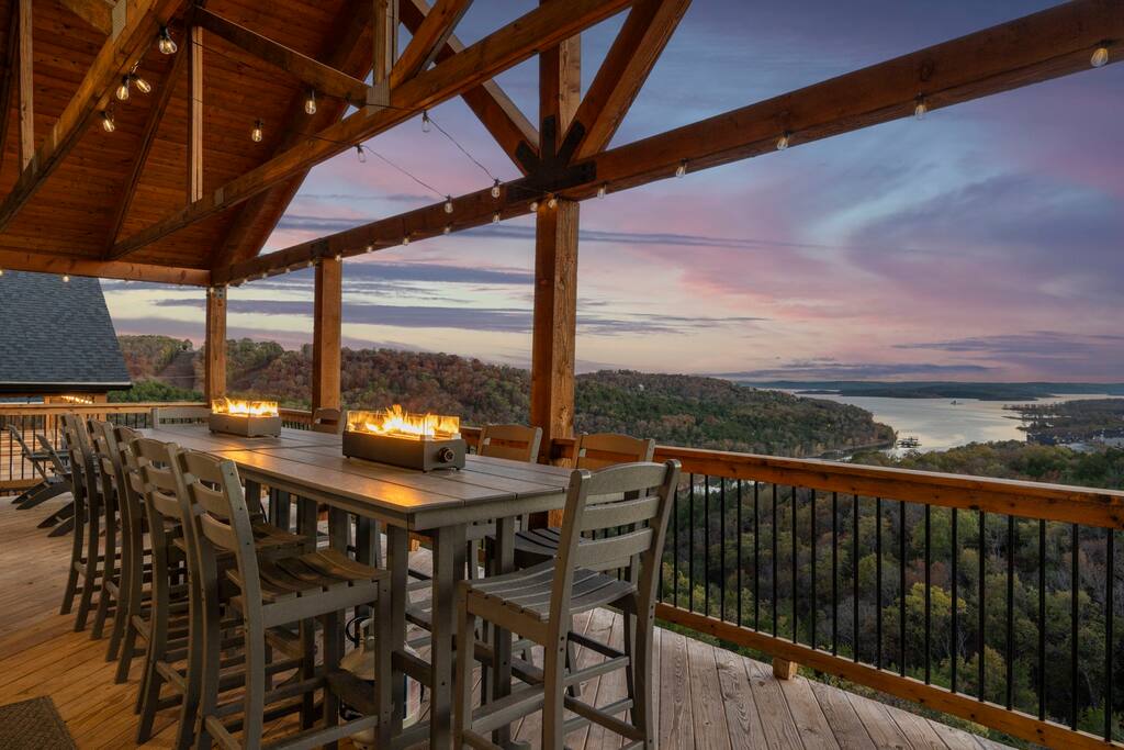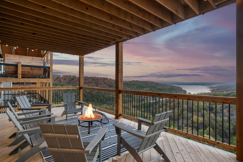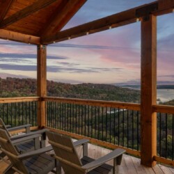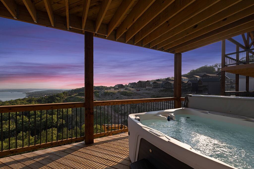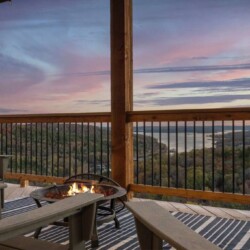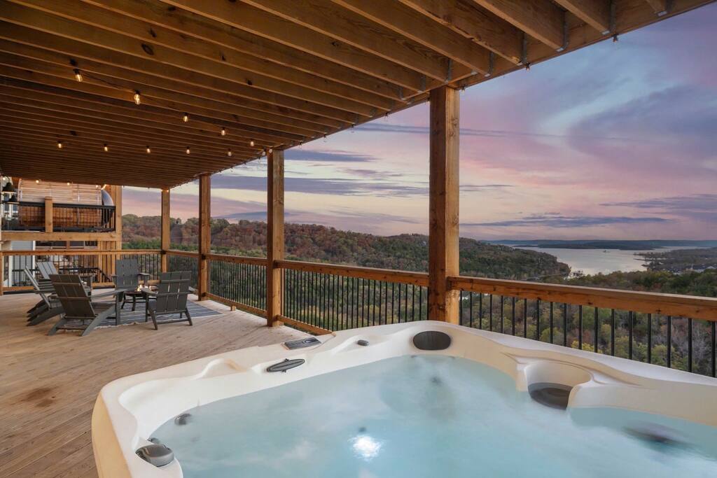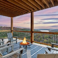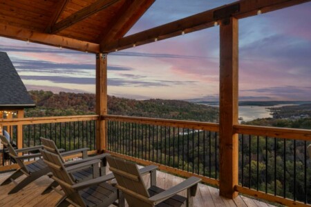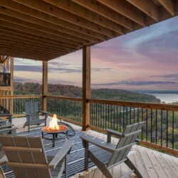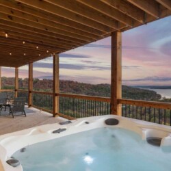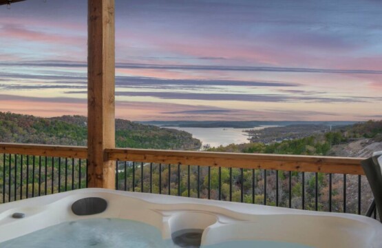 You’ll find full-length decks on all levels with plenty of seating and a private hot tub on the middle level. Days in this Branson cabin always end on a high as you marvel at the magnificent sunset over Table Rock Lake.
