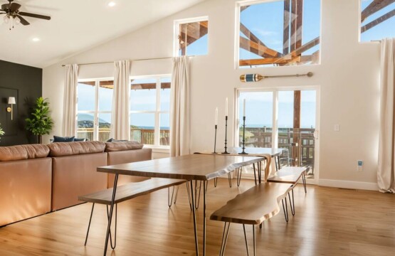 The accommodation is super comfortable and its size and well-appointed rooms makes it the perfect place for large groups to hang out. There’s high vaulted ceilings, floor to ceiling windows and plenty of seating indoors and out.