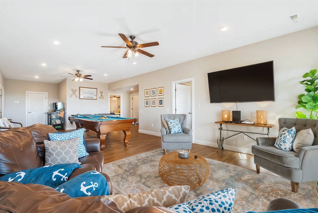 The middle level features a fantastic games room equipped with a pool table, air hockey table and an Xbox Series X.